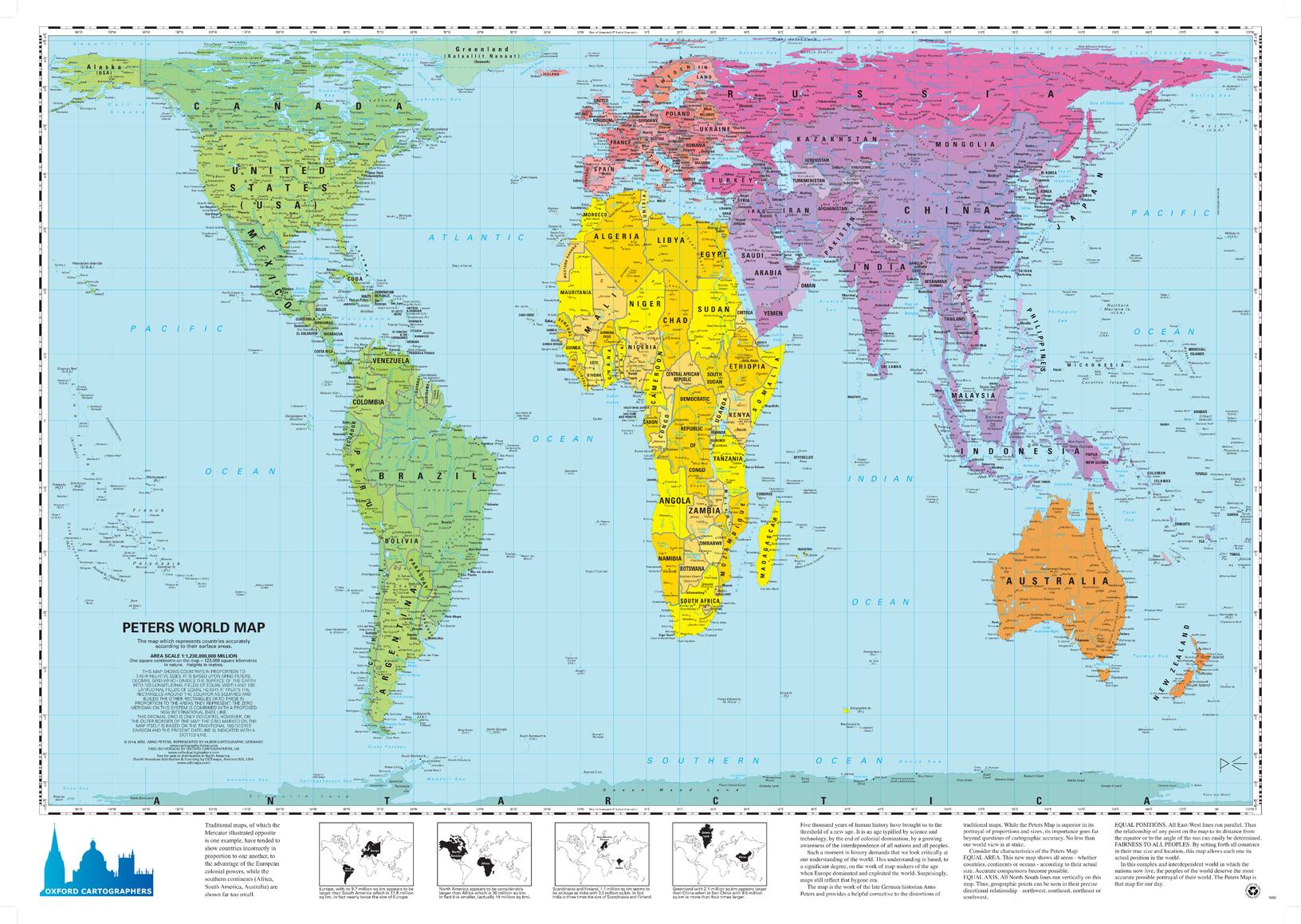 World map, politically coloured, on the Peters ProjectionPage Size: 34 x 24.25 in (863 x 613 mm)