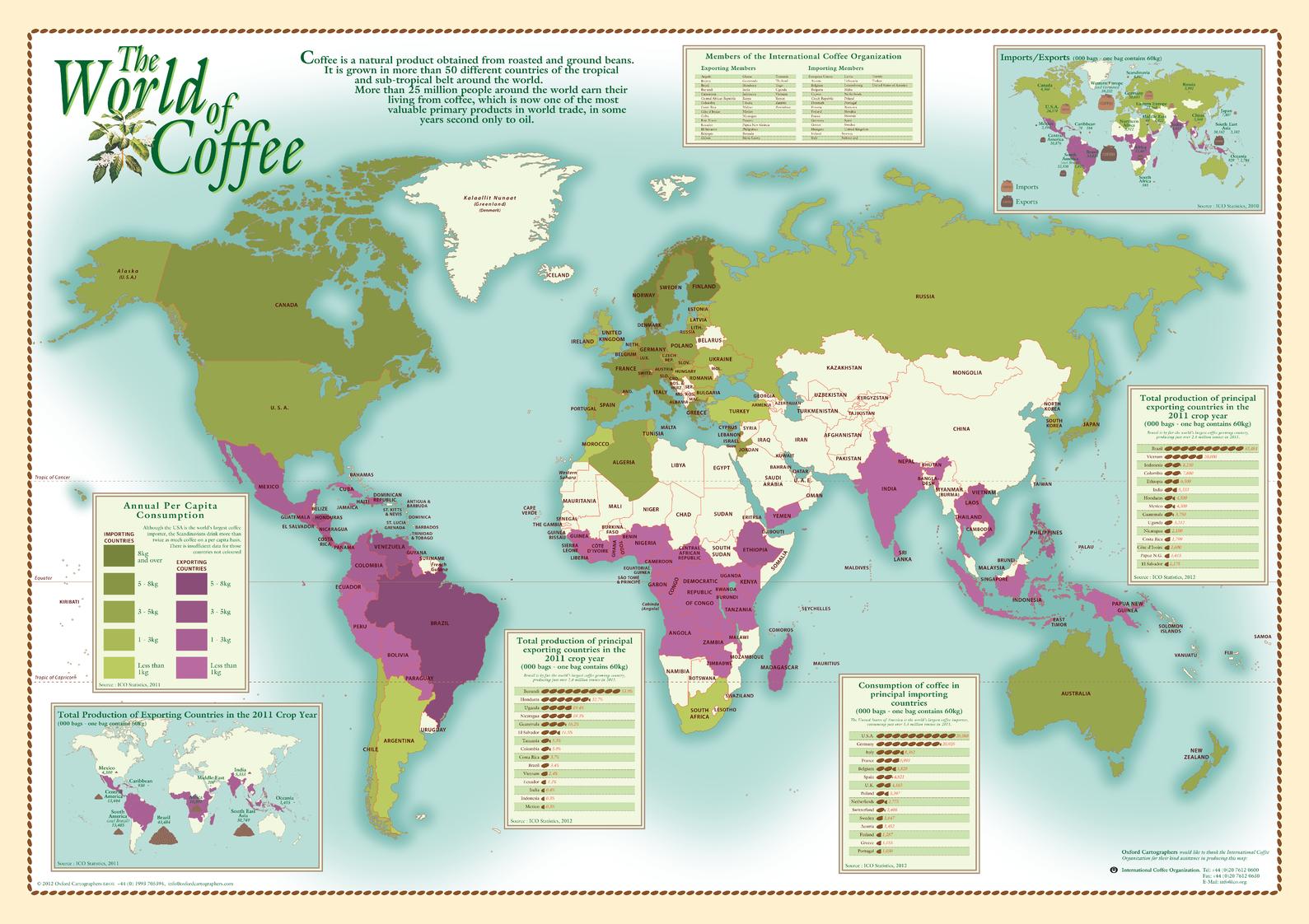 World map showing coffee production and consumptionISBN 9780946405411Page Size: 33.25 x 23.25 in (840 x 590 mm)