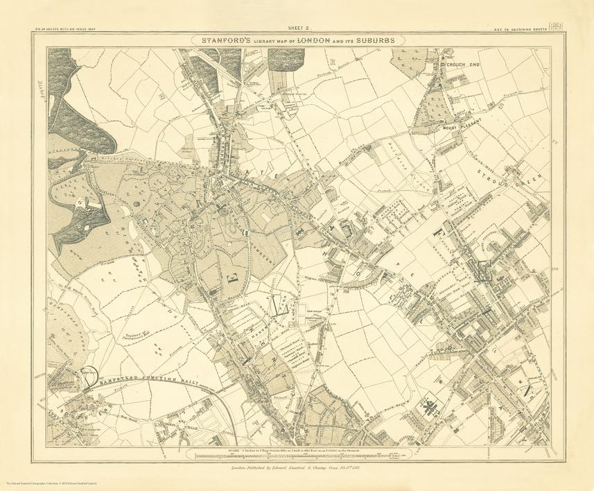 The Stanford’s Library Map of London (Sheet 2) is from a fascinating series of reproductions from our Edward Stanford Cartographic Collection archive.Page Size: 15 x 18 in (375 x 454 mm)