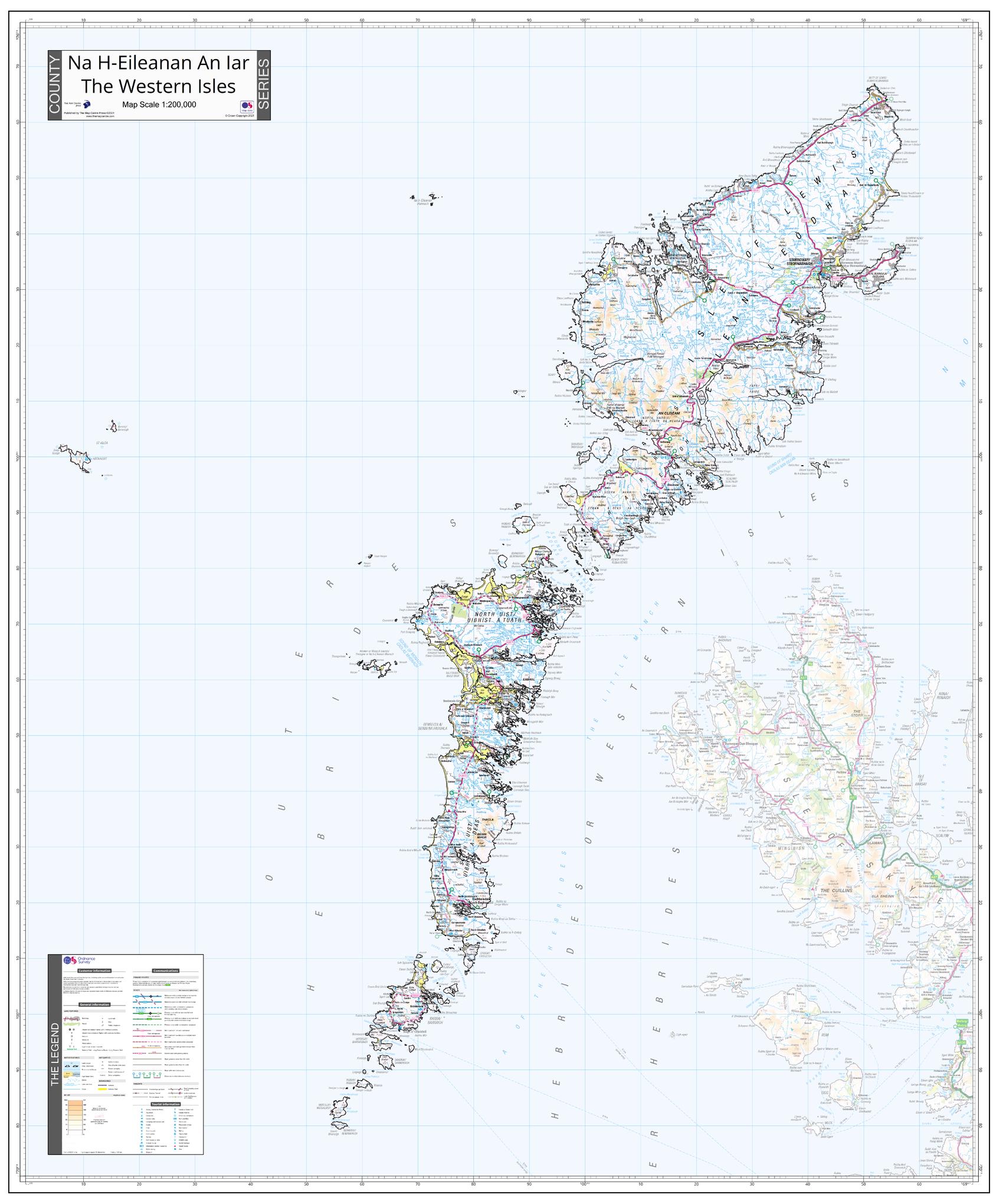 An Ordnance Survey Map covering the whole of the county showing the county boundary including applicable Unitary Authority boundaries. The mapping outside the county boundary is faded to highlight the county. Part of a series of counties maps that cover England Scotland & Wales all using the same background Ordnance Survey Mapping for continuity across the whole series. This map includes Stornoway