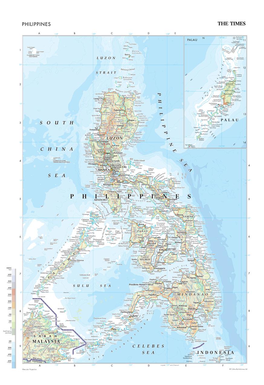This map of the Philippines is a benchmark of cartographic excellence, taken from the industry leading Times Comprehensive Atlas of the World. Published in full colour, this map of the Philippines is beautifully re-designed and fully updated. Islands including Luzon, Mindanao, Seram, and Samar are clearly identifiable, as are all major cities: Quezon City, Davao City, Antipolo and the Capital, Manilla. Accompanying the detailed map of the Philippines’ many islands is an inset map of the independent archipelago of Palau. Each element is carefully chosen to make the map a coherent and attractive visual guide to the Philippines.