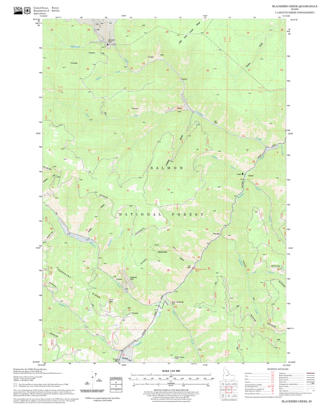 United States Department of Agriculture Forestry Service topographical map of Blackbird Creek, Salmon-Chalis National Forest, Idaho.