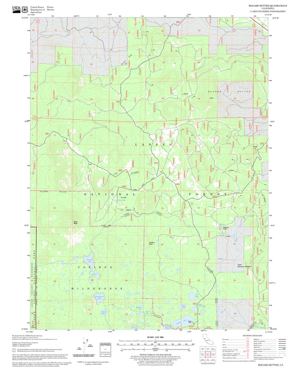 United States Department of Agriculture Forestry Service topographical map of Bogard Buttes, Lassen National Forest, California.