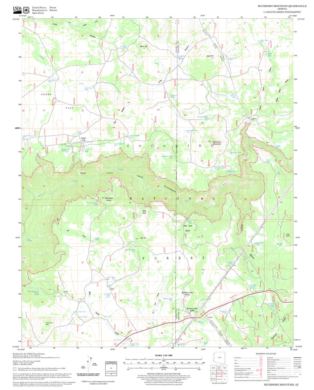 United States Department of Agriculture Forestry Service topographical map of Buckhorn Mountain, Coconino National Forest, Arizona.