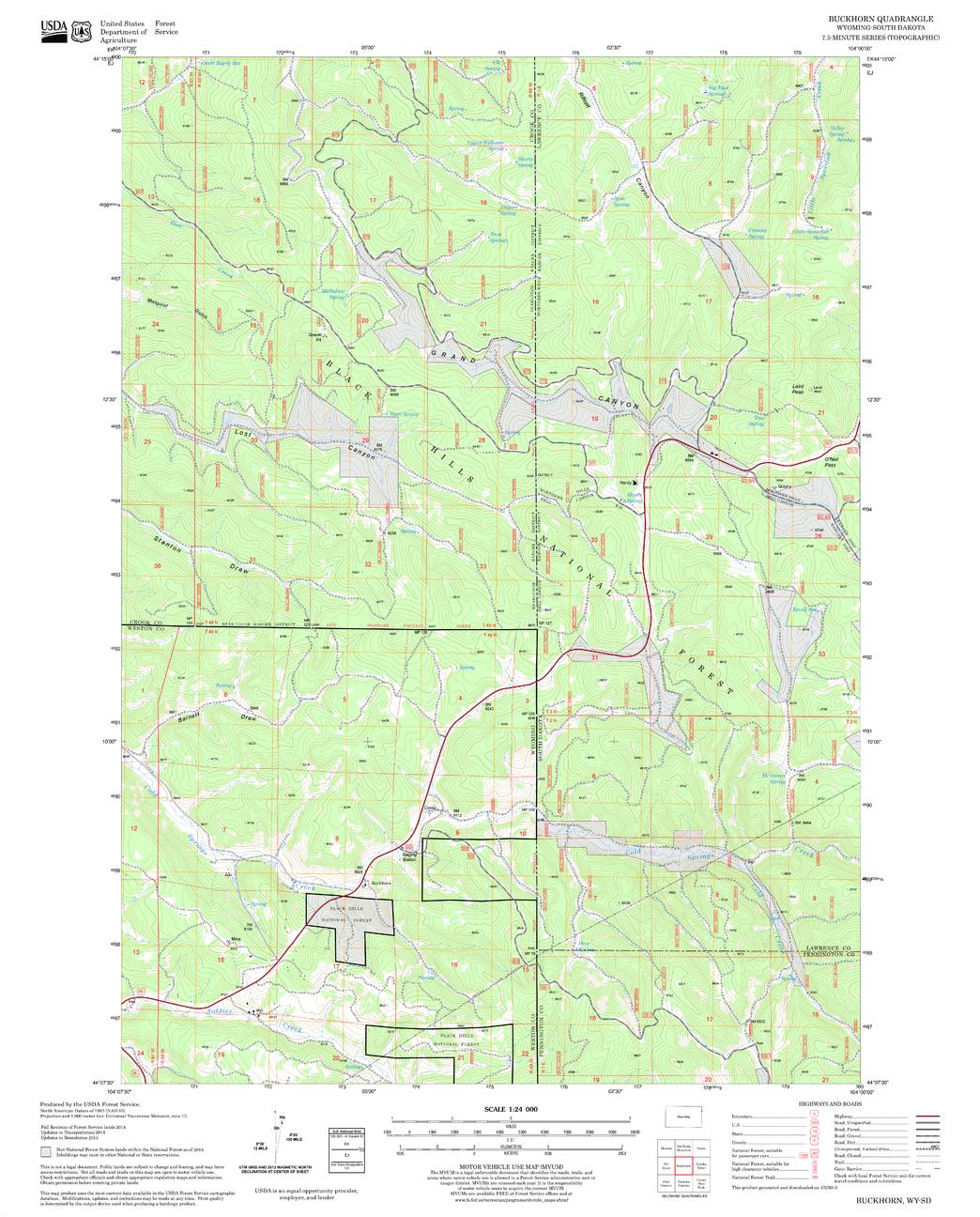 United States Department of Agriculture Forestry Service topographical map of Buckhorn, Black Hills National Forest, South Dakota.