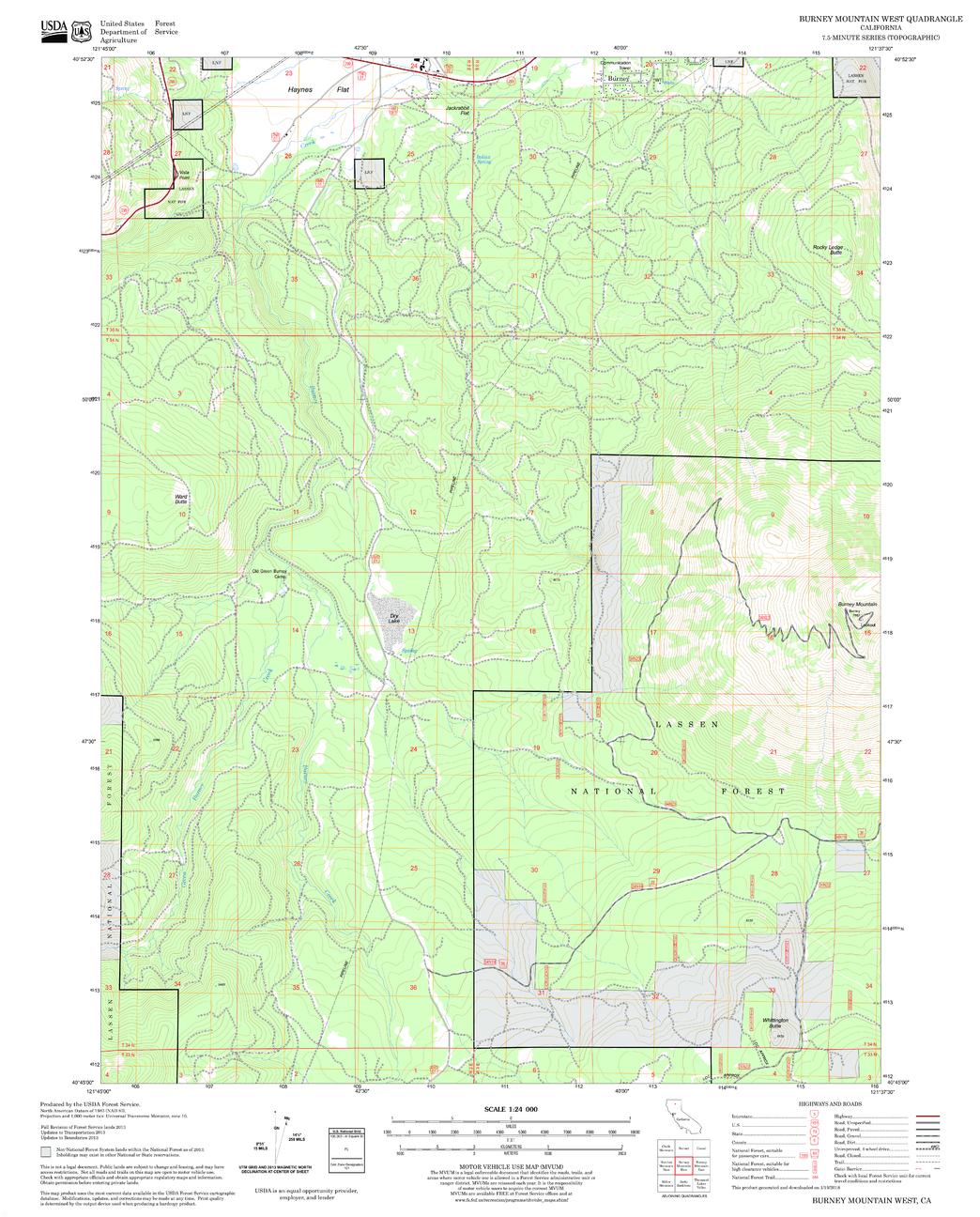 United States Department of Agriculture Forestry Service topographical map of Burney Mountain West, Lassen National Forest, California.