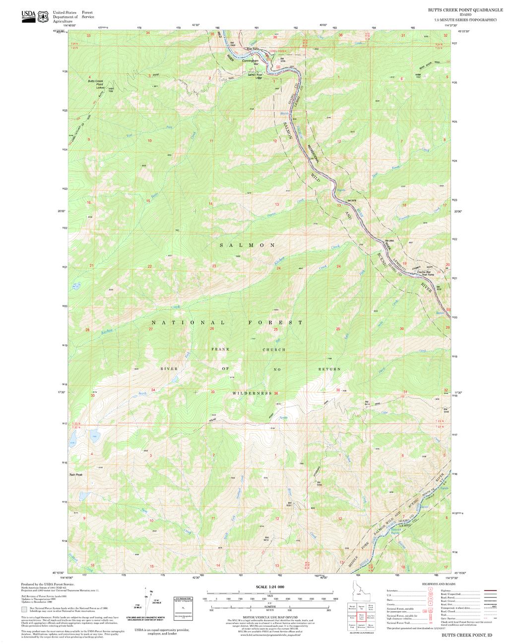 United States Department of Agriculture Forestry Service topographical map of Butts Creek Point, Salmon-Chalis National Forest, Idaho.