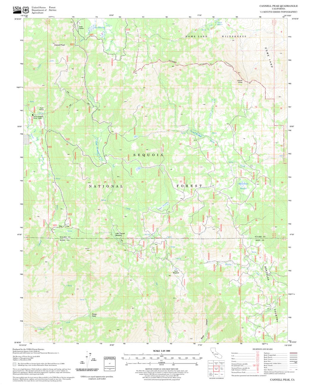 United States Department of Agriculture Forestry Service topographical map of Cannell Peak, Sequoia National Forest, California.