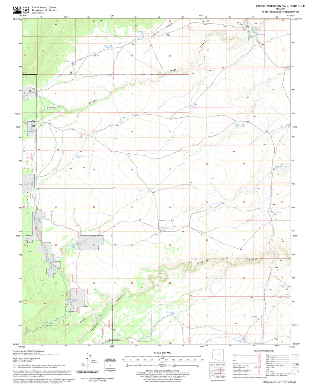 United States Department of Agriculture Forestry Service topographical map of Chavez Mountain NW, Coconino National Forest, Arizona.