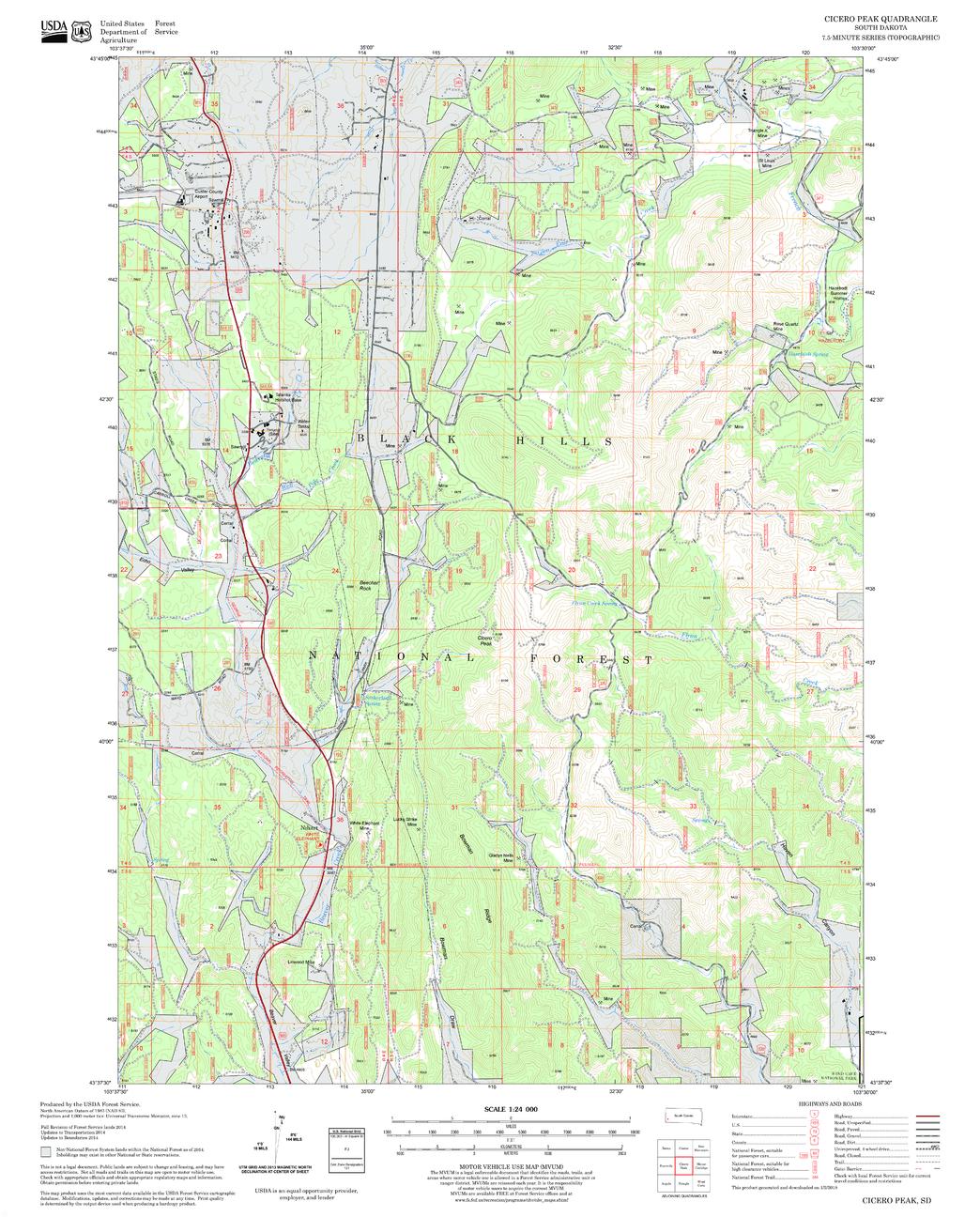 United States Department of Agriculture Forestry Service topographical map of Cicero Peak, Black Hills National Forest, South Dakota.