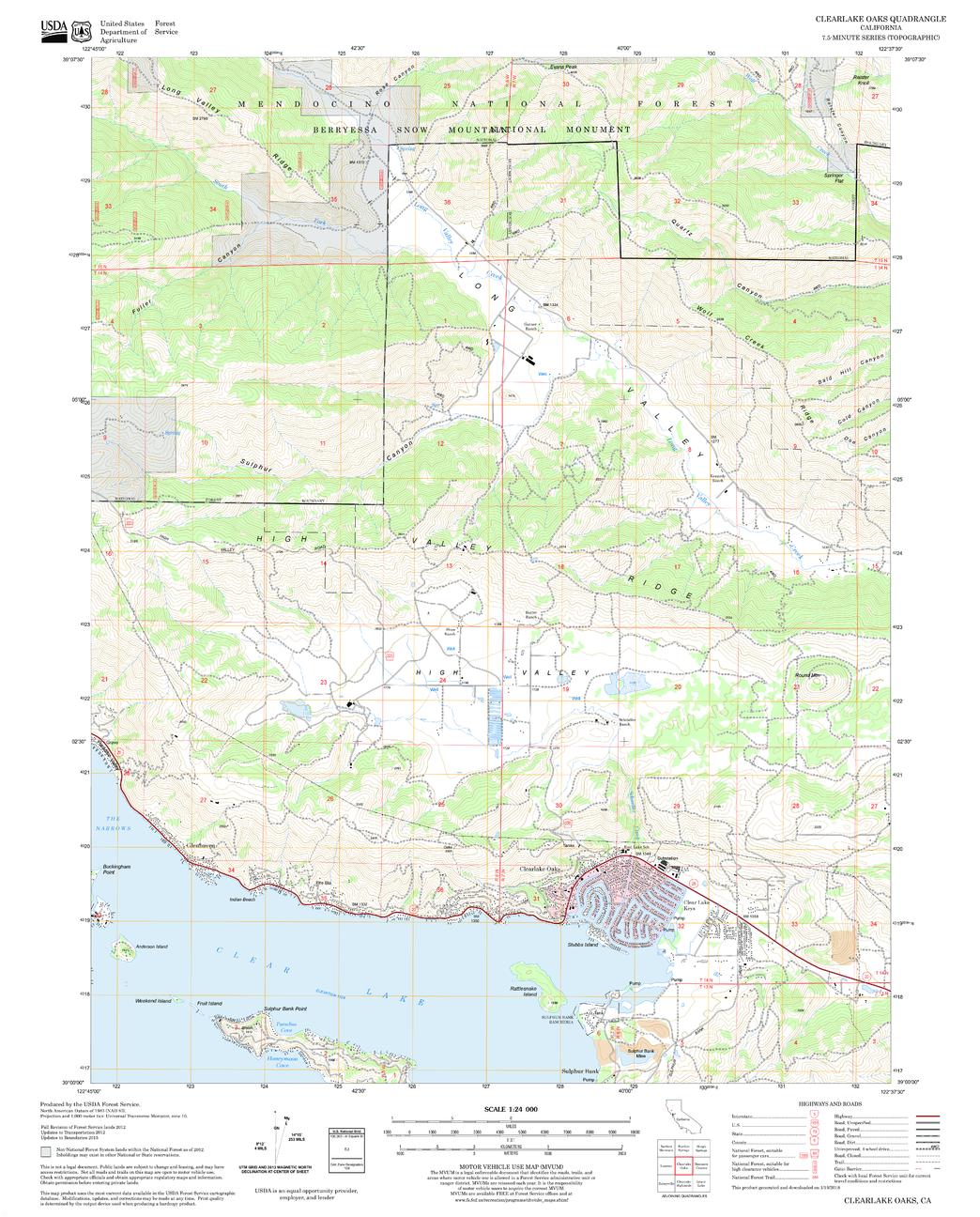 United States Department of Agriculture Forestry Service topographical map of Clearlake Oaks, Mendocino National Forest, California.