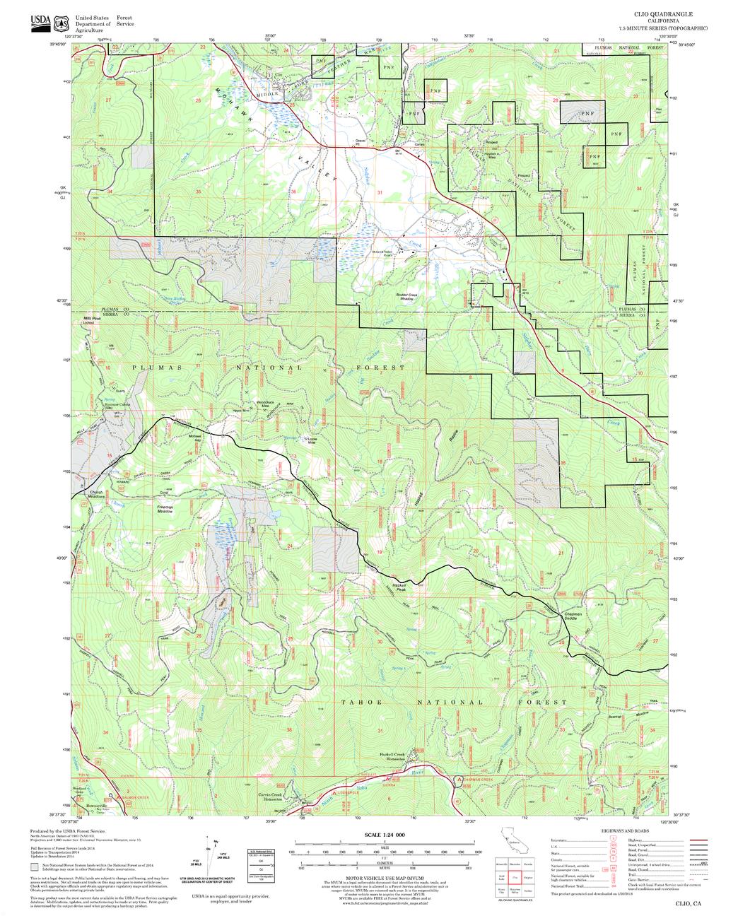 United States Department of Agriculture Forestry Service topographical map of Clio, Tahoe National Forest, California.