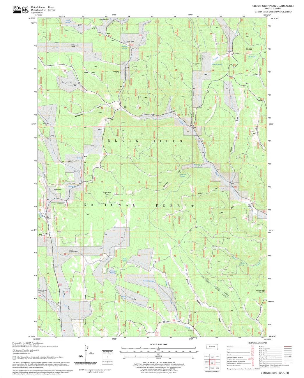 United States Department of Agriculture Forestry Service topographical map of Crows Nest Peak, Black Hills National Forest, South Dakota.
