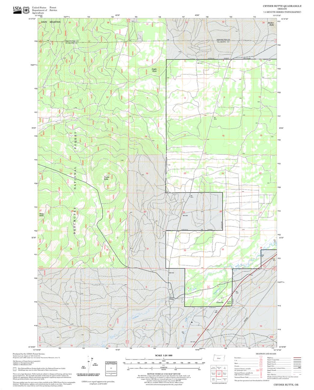 United States Department of Agriculture Forestry Service topographical map of Cryder Butte, Deschutes National Forest, Oregon.