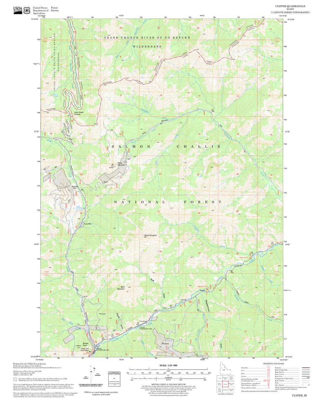 United States Department of Agriculture Forestry Service topographical map of Custer, Salmon-Chalis National Forest, Idaho.