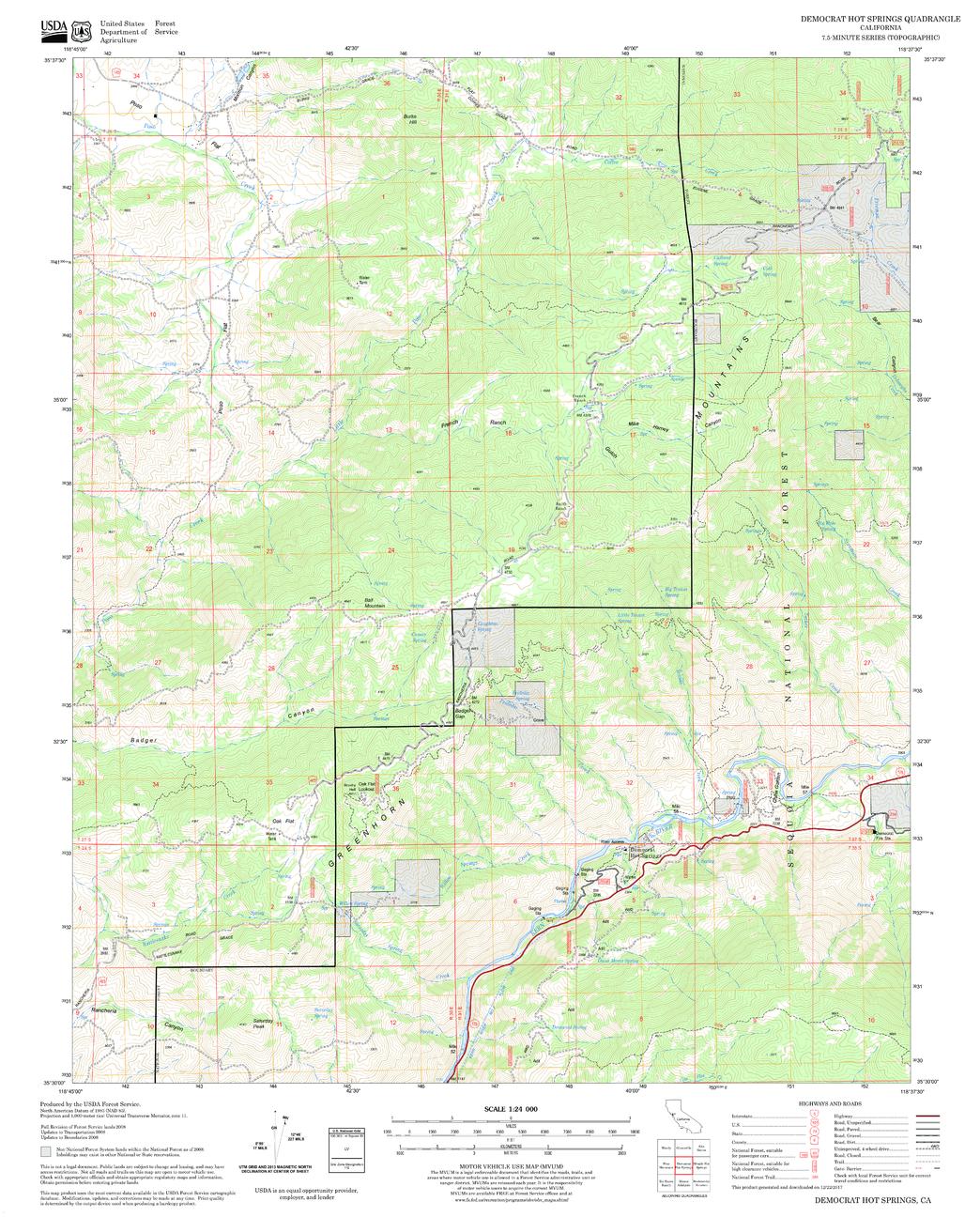United States Department of Agriculture Forestry Service topographical map of Democrat Hot Springs, Sequoia National Forest, California.