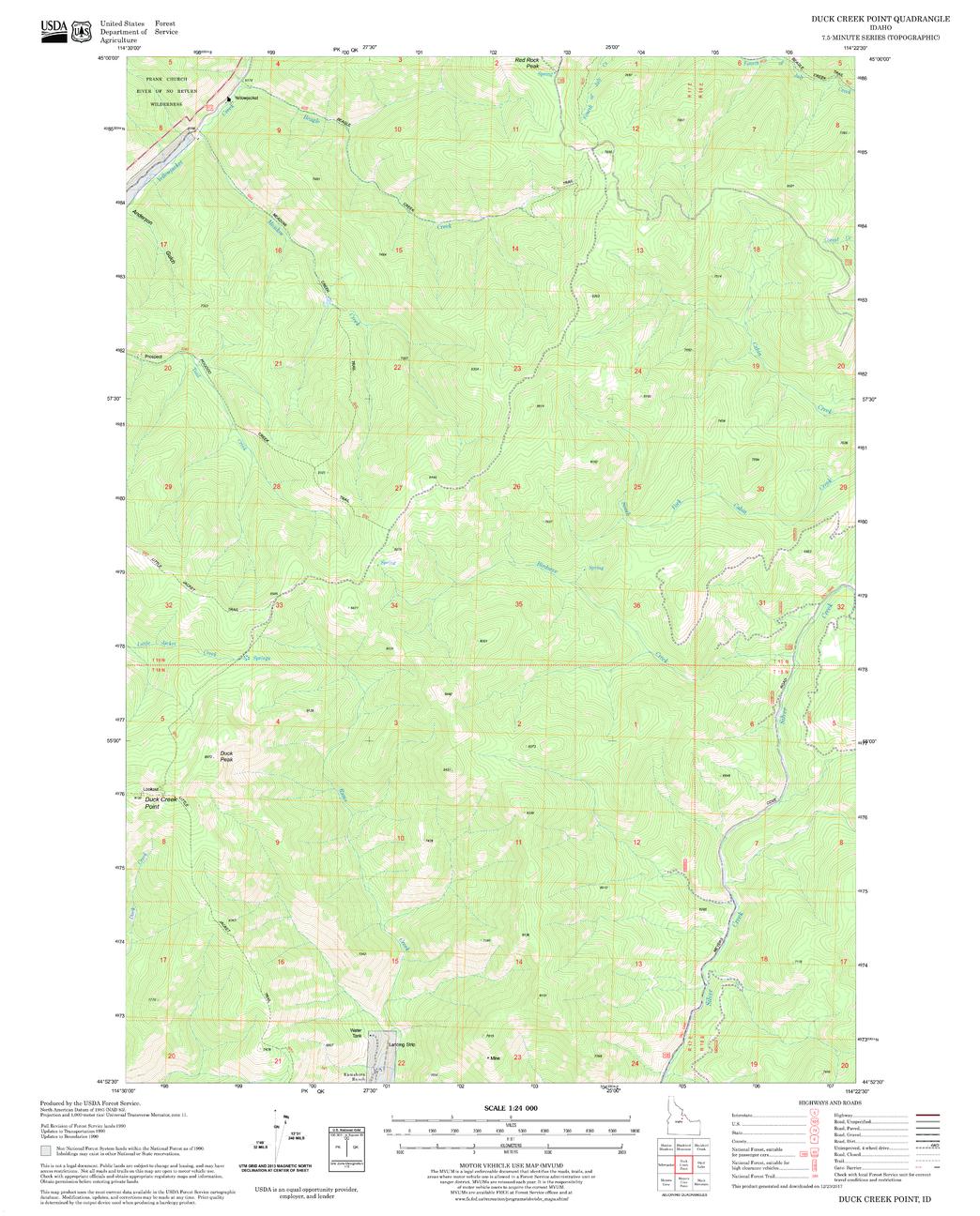 United States Department of Agriculture Forestry Service topographical map of Duck Creek Point, Salmon-Chalis National Forest, Idaho.