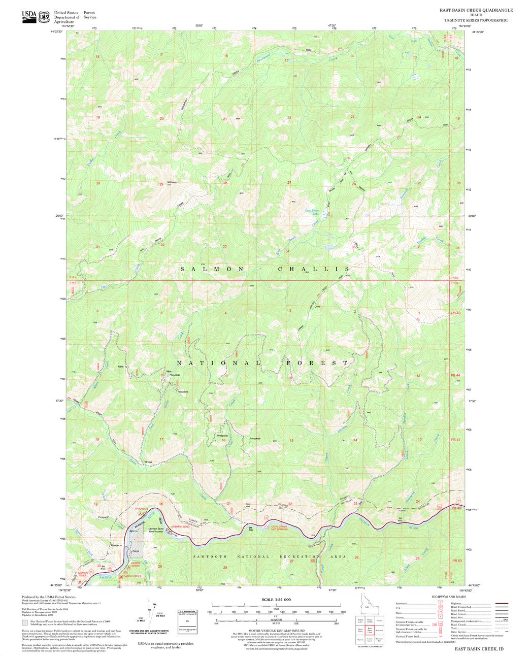 United States Department of Agriculture Forestry Service topographical map of East Basin Creek, Salmon-Chalis National Forest, Idaho.