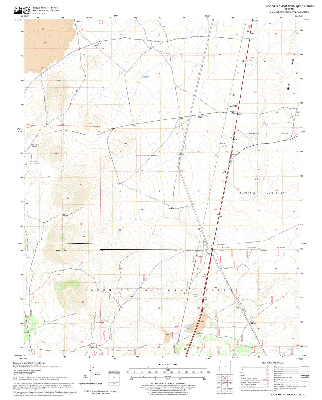 United States Department of Agriculture Forestry Service topographical map of East of S P Mountain, Coconino National Forest, Arizona.