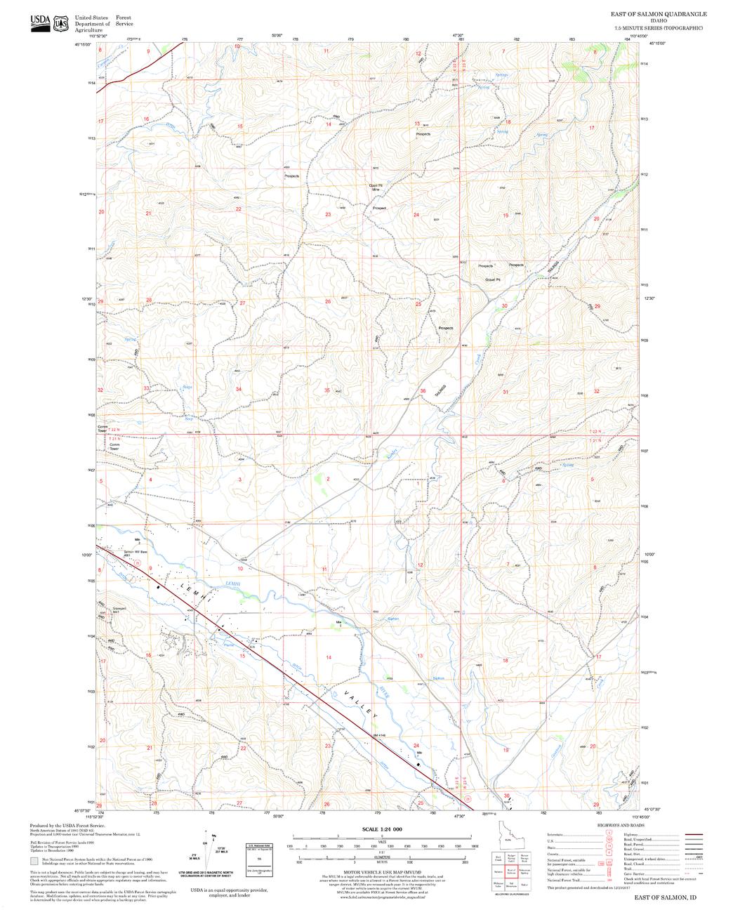 United States Department of Agriculture Forestry Service topographical map of East of Salmon, Salmon-Chalis National Forest, Idaho.