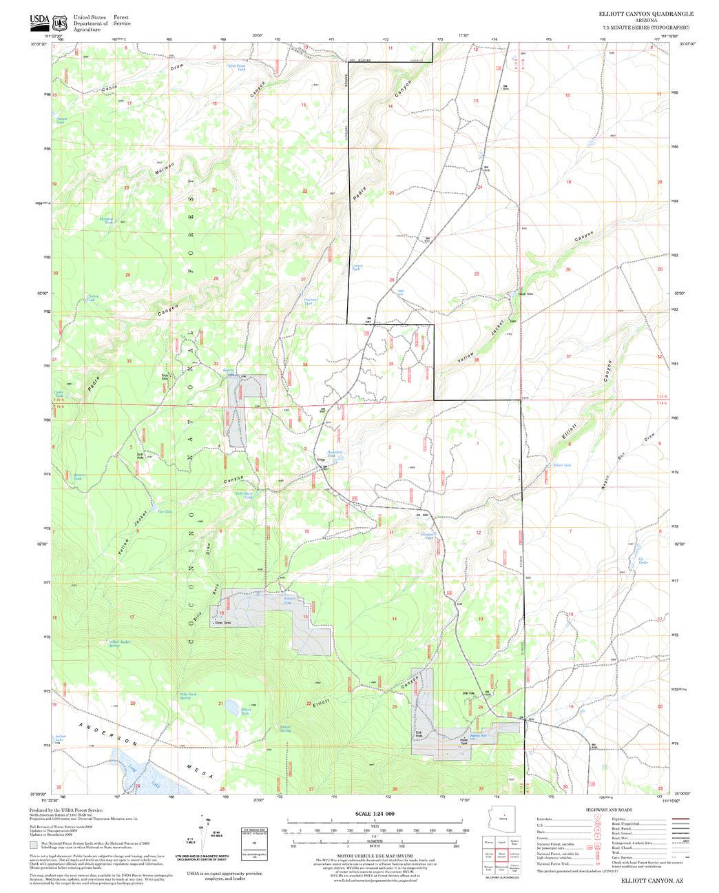 United States Department of Agriculture Forestry Service topographical map of Elliott Canyon, Coconino National Forest, Arizona.