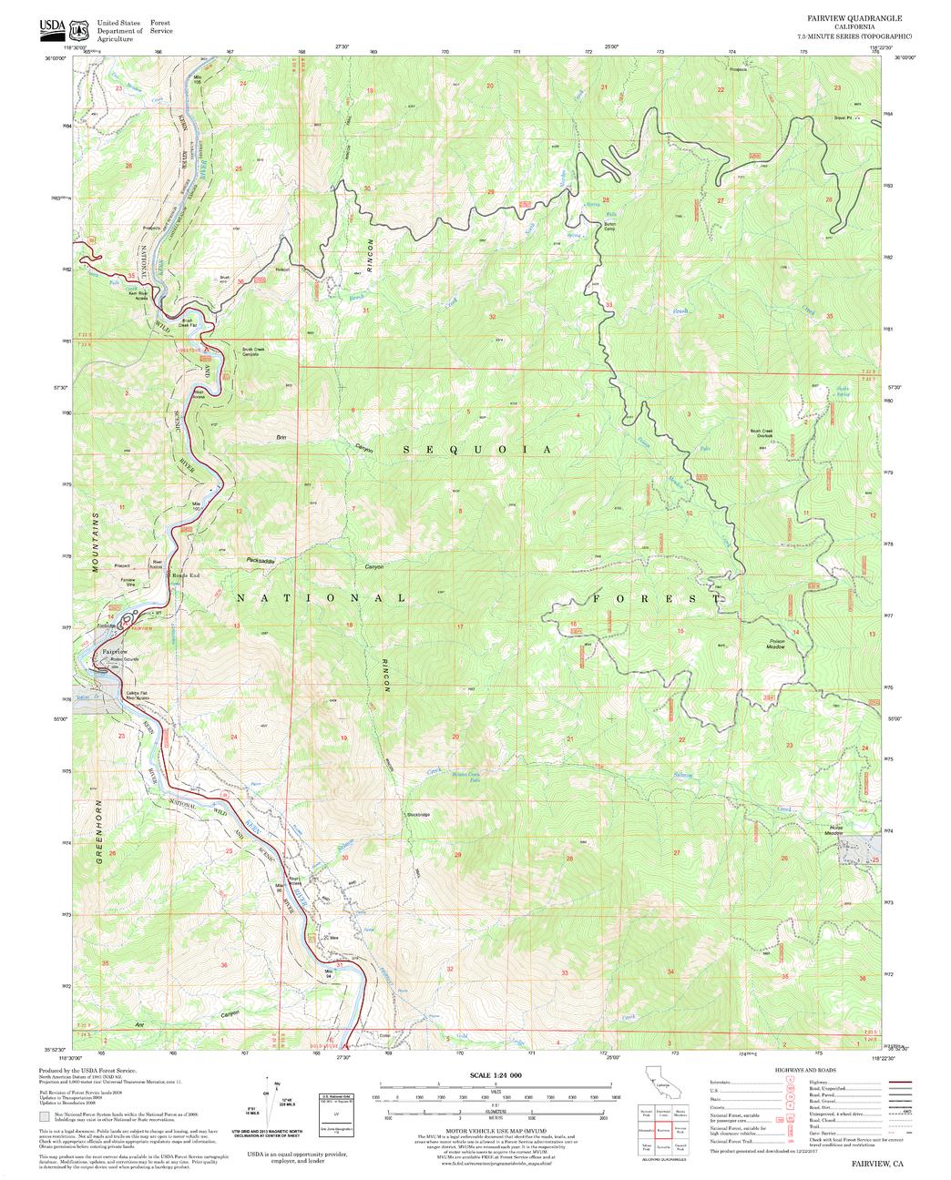 United States Department of Agriculture Forestry Service topographical map of Fairview, Sequoia National Forest, California.