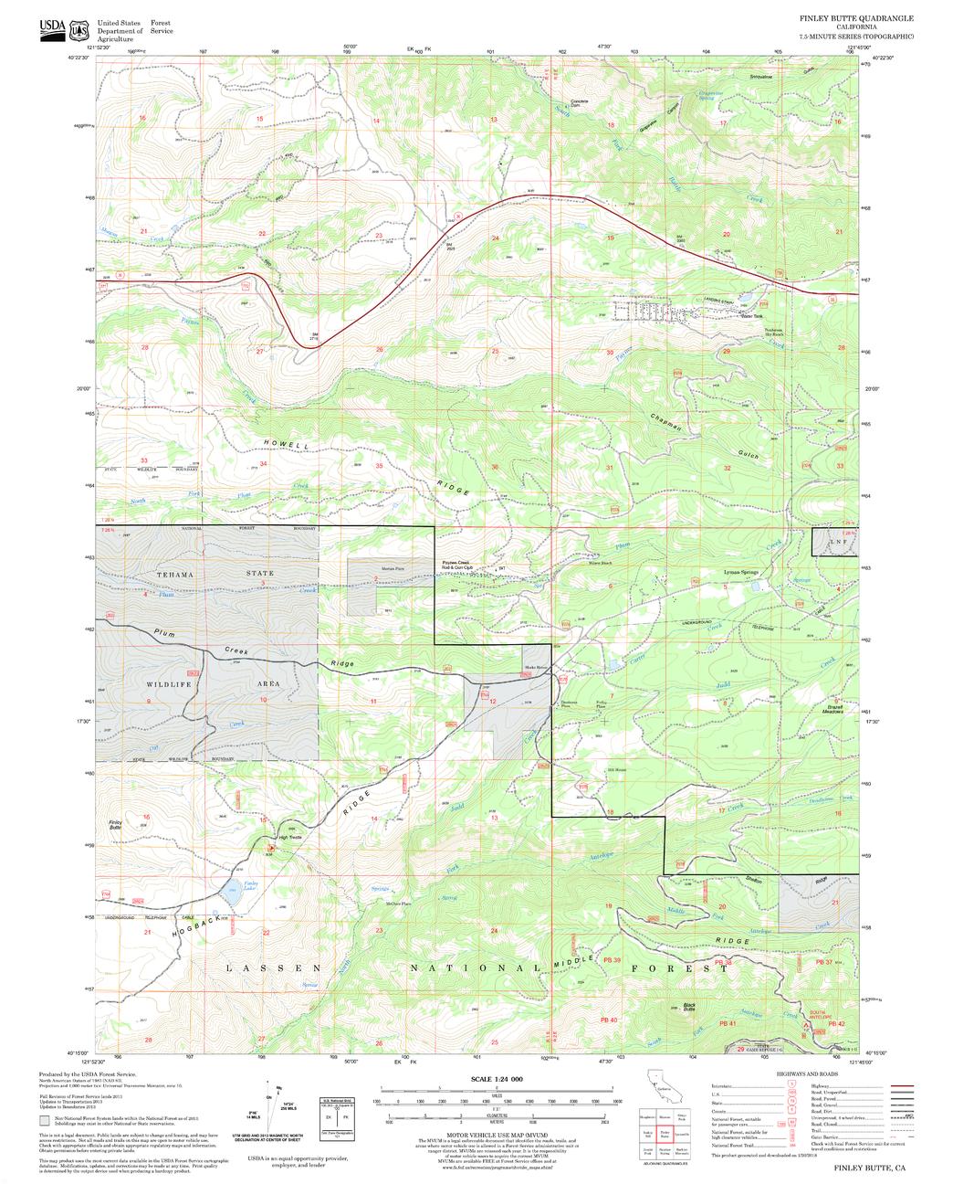 United States Department of Agriculture Forestry Service topographical map of Finley Butte, Lassen National Forest, California.