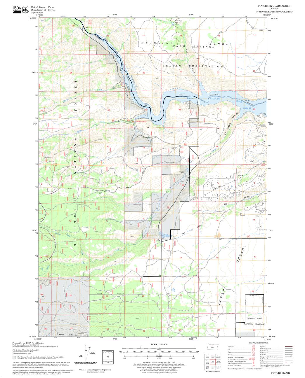 United States Department of Agriculture Forestry Service topographical map of Fly Creek, Deschutes National Forest, Oregon.