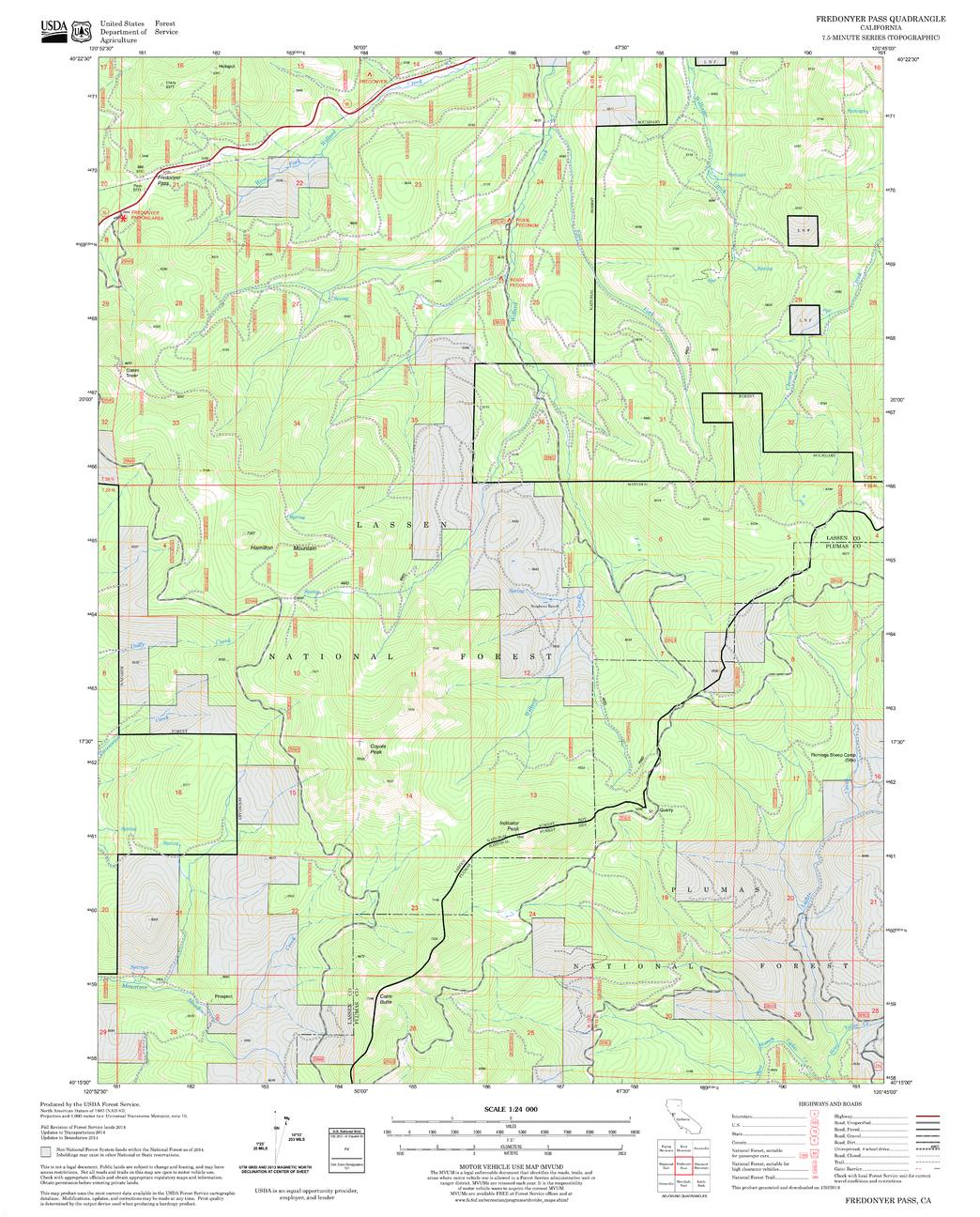 United States Department of Agriculture Forestry Service topographical map of Fredonyer Pass, Lassen National Forest, California.