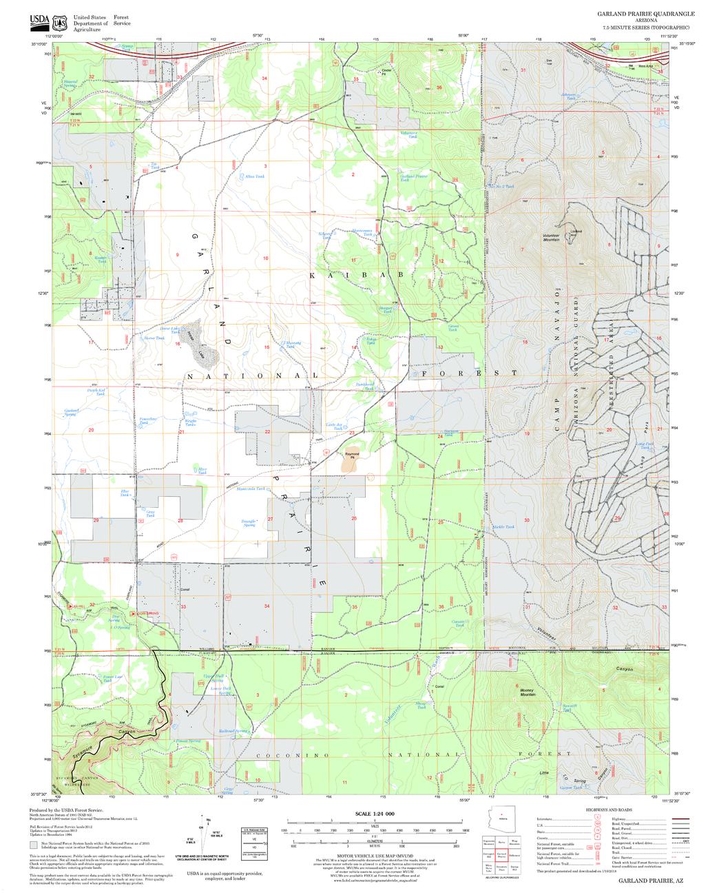United States Department of Agriculture Forestry Service topographical map of Garland Prairie, Coconino National Forest, Arizona.