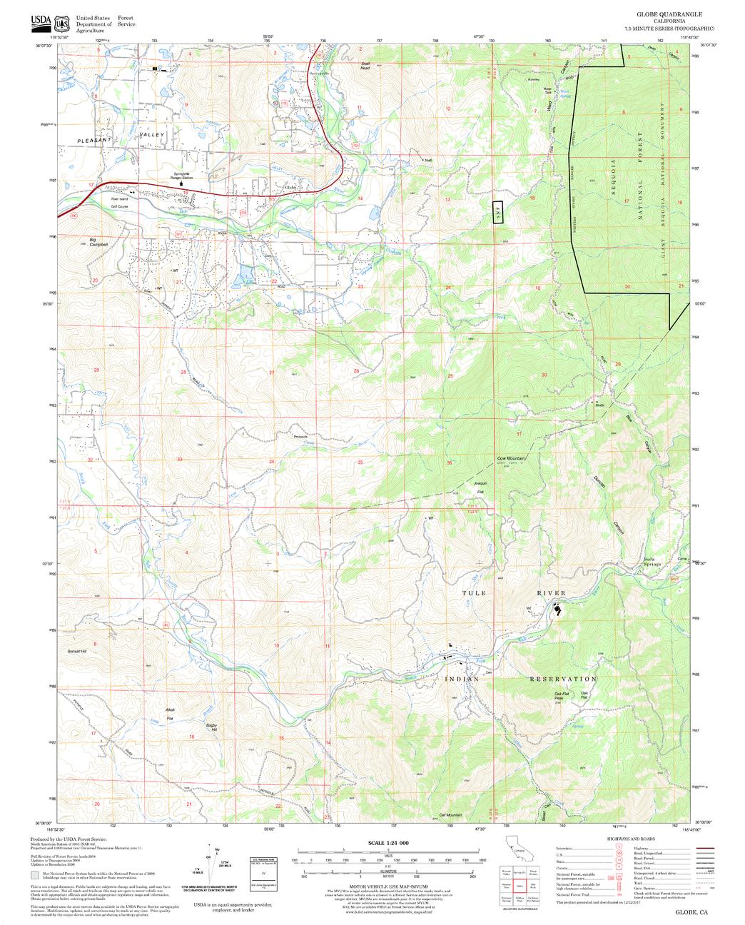 United States Department of Agriculture Forestry Service topographical map of Globe, Sequoia National Forest, California.