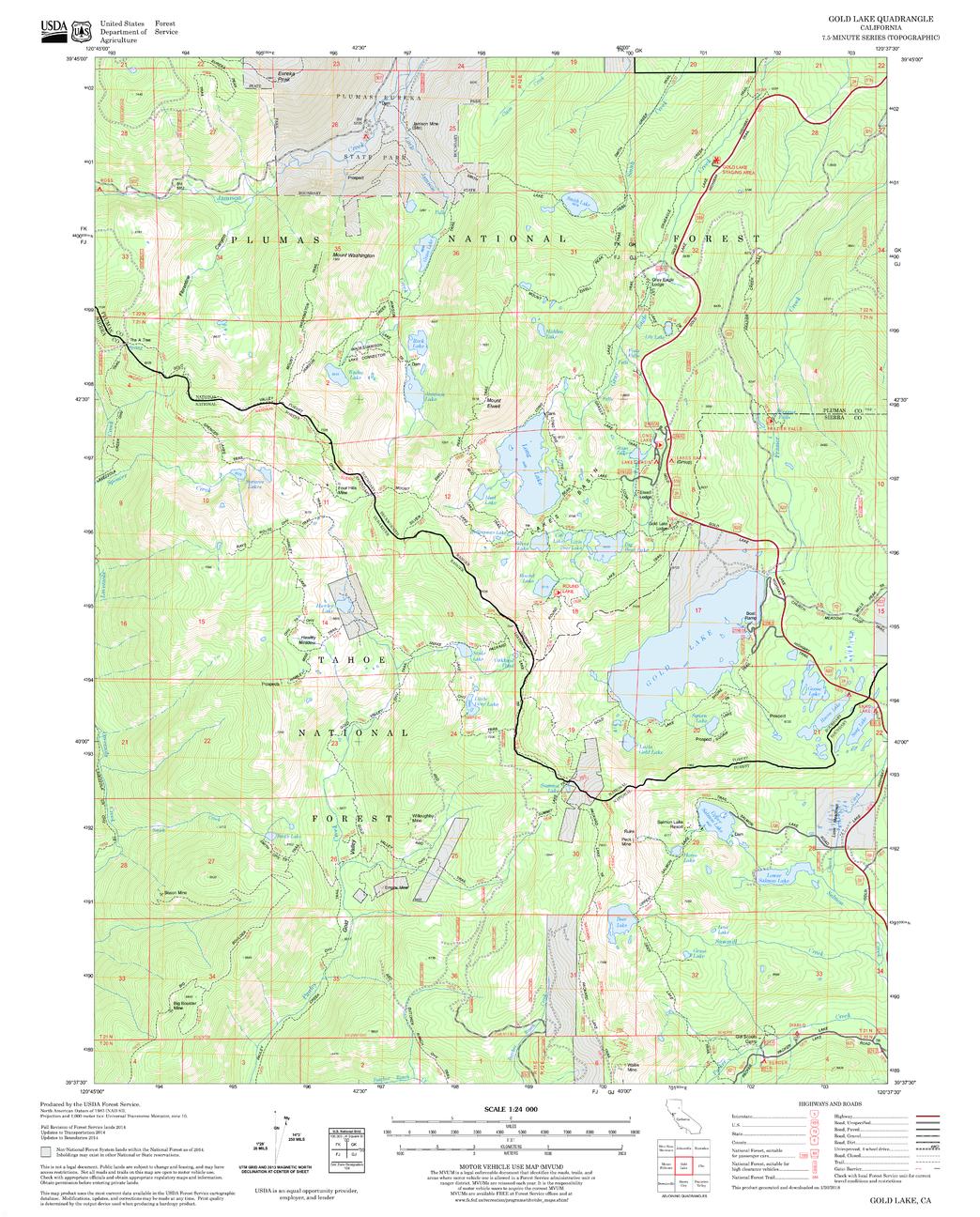 United States Department of Agriculture Forestry Service topographical map of Gold Lake, Tahoe National Forest, California.