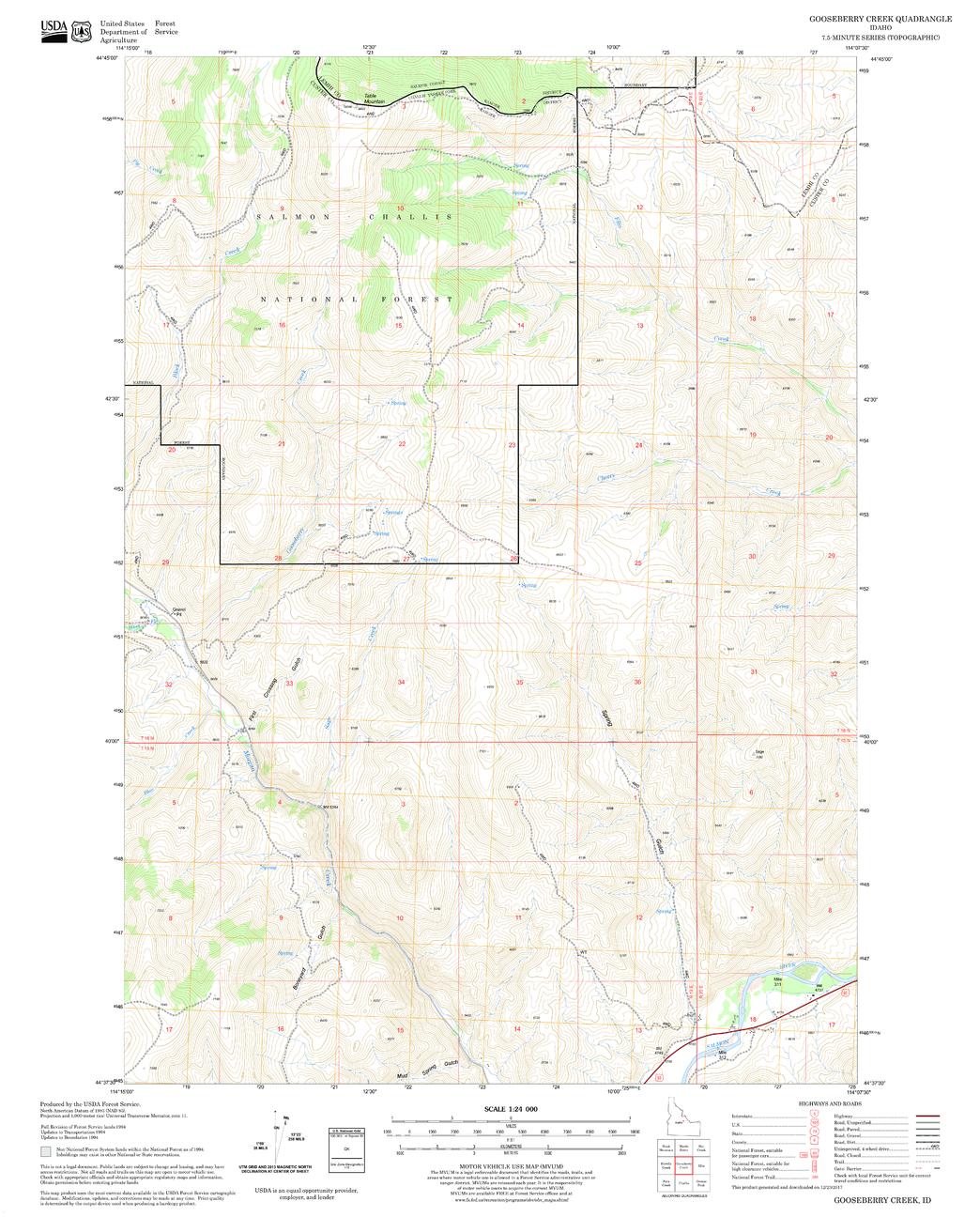 United States Department of Agriculture Forestry Service topographical map of Gooseberry Creek, Salmon-Chalis National Forest, Idaho.
