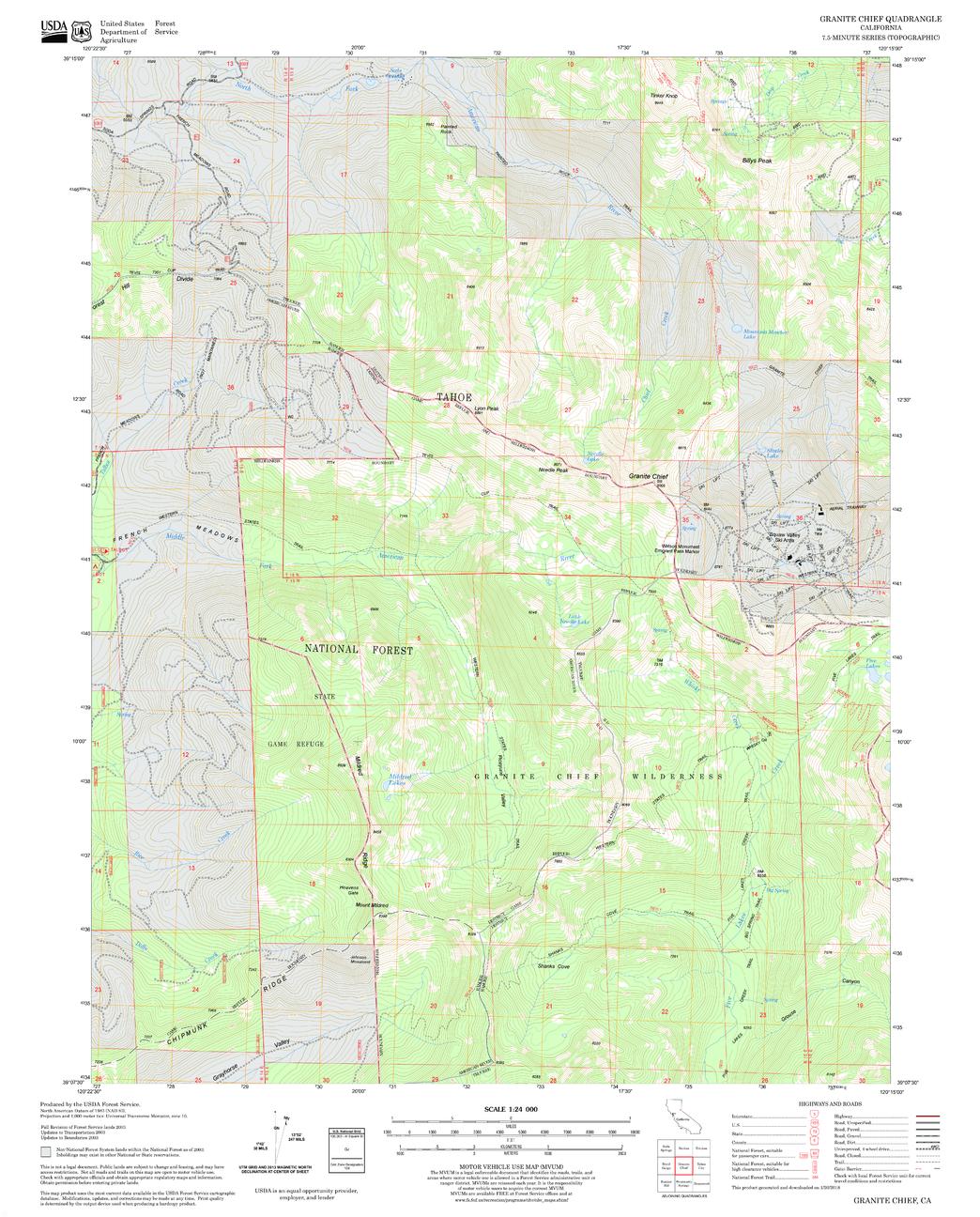 United States Department of Agriculture Forestry Service topographical map of Granite Chief, Tahoe National Forest, California.