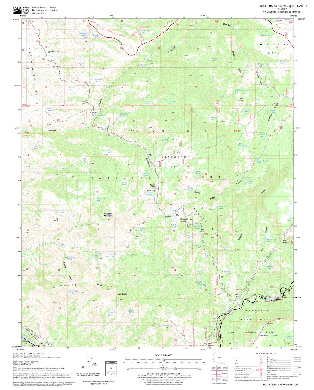United States Department of Agriculture Forestry Service topographical map of Hackberry Mountain, Coconino National Forest, Arizona.