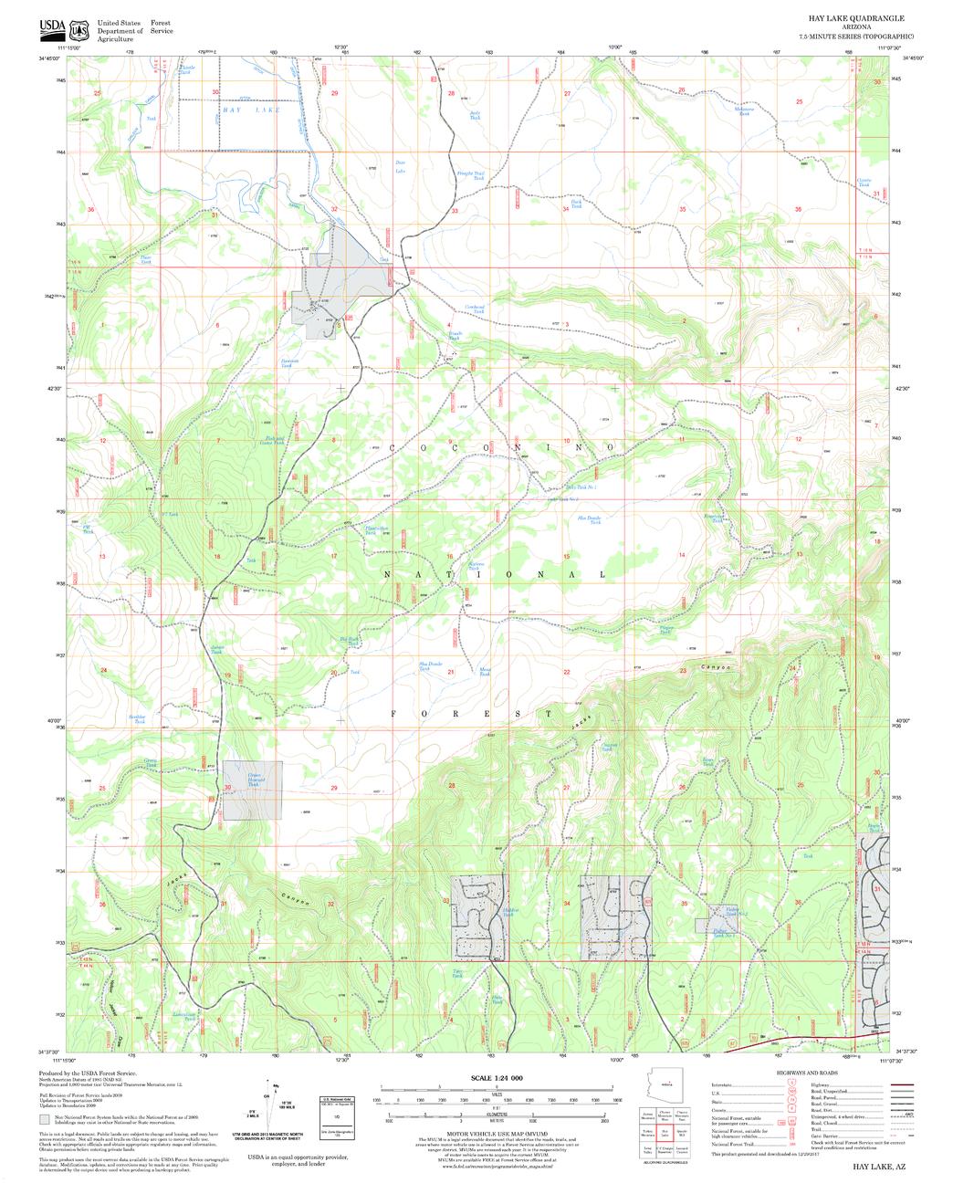 United States Department of Agriculture Forestry Service topographical map of Hay Lake, Coconino National Forest, Arizona.
