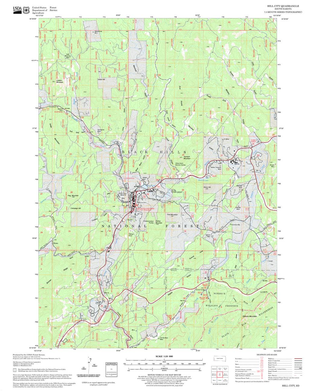 United States Department of Agriculture Forestry Service topographical map of Hill City, Black Hills National Forest, South Dakota.