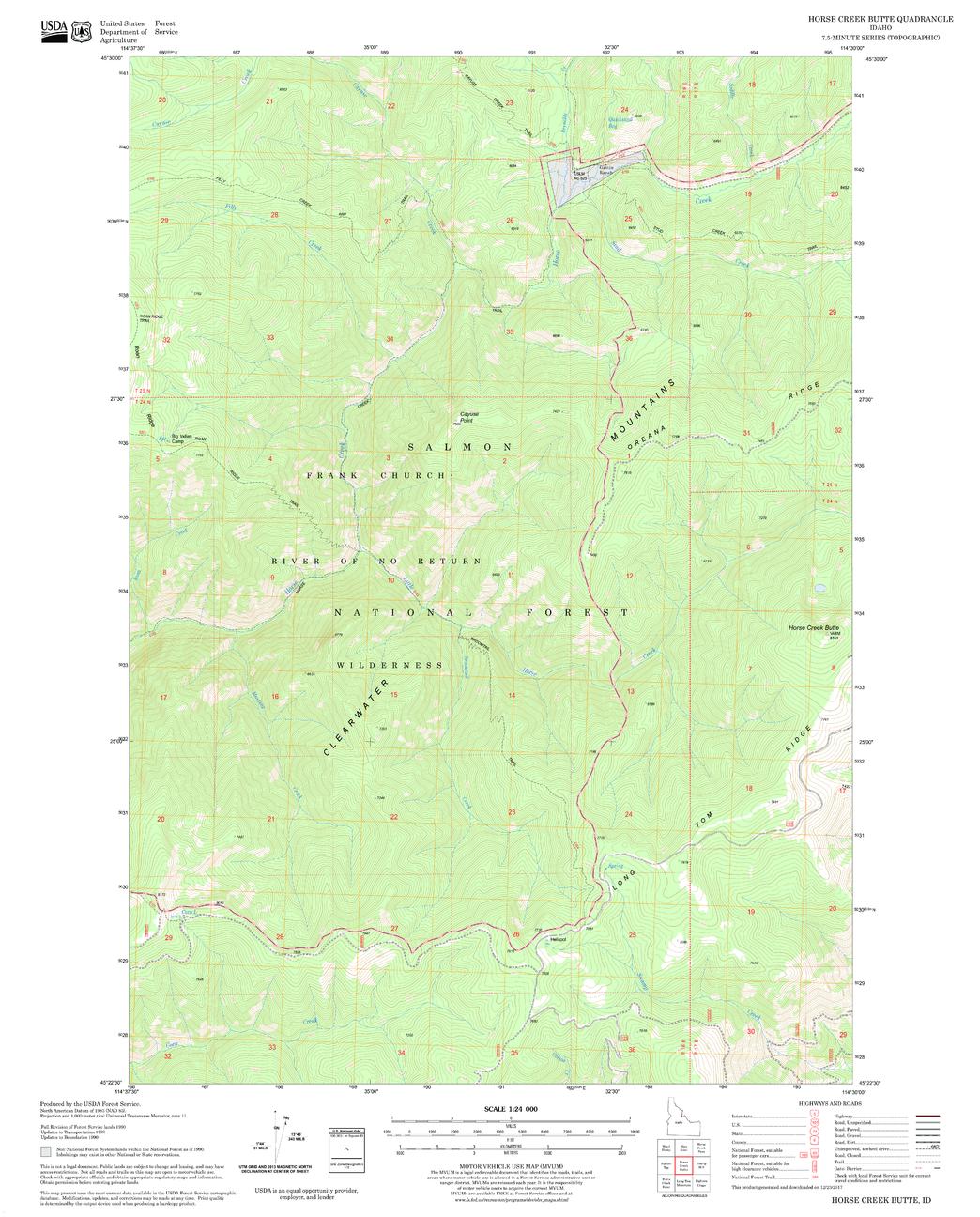 United States Department of Agriculture Forestry Service topographical map of Horse Creek Butte, Salmon-Chalis National Forest, Idaho.