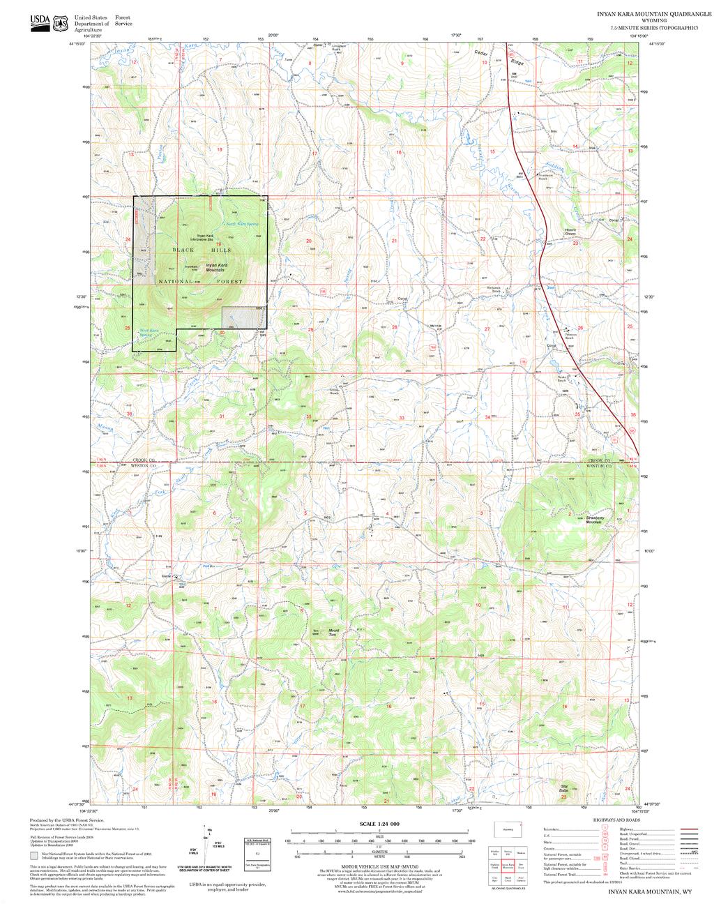 United States Department of Agriculture Forestry Service topographical map of Inyan Kara Mountain, Black Hills National Forest, South Dakota.