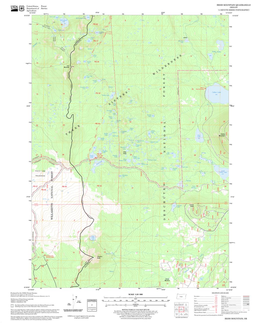 United States Department of Agriculture Forestry Service topographical map of Irish Mountain, Deschutes National Forest, Oregon.