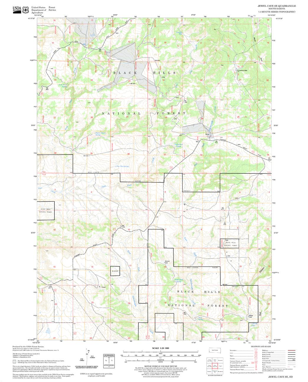United States Department of Agriculture Forestry Service topographical map of Jewel Cave SE, Black Hills National Forest, South Dakota.