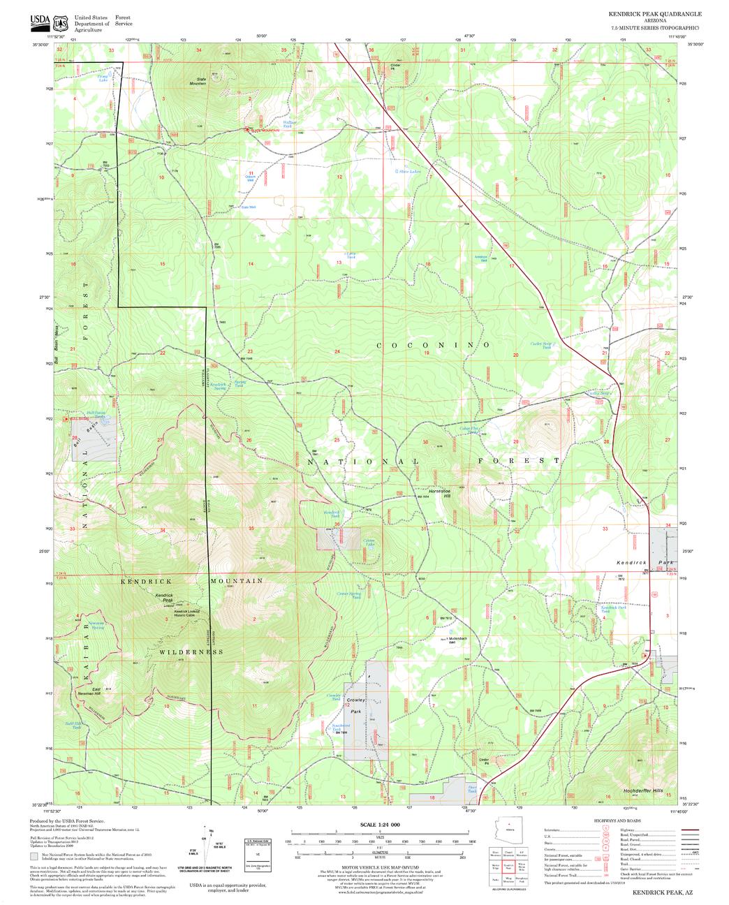 United States Department of Agriculture Forestry Service topographical map of Kendrick Peak, Coconino National Forest, Arizona.