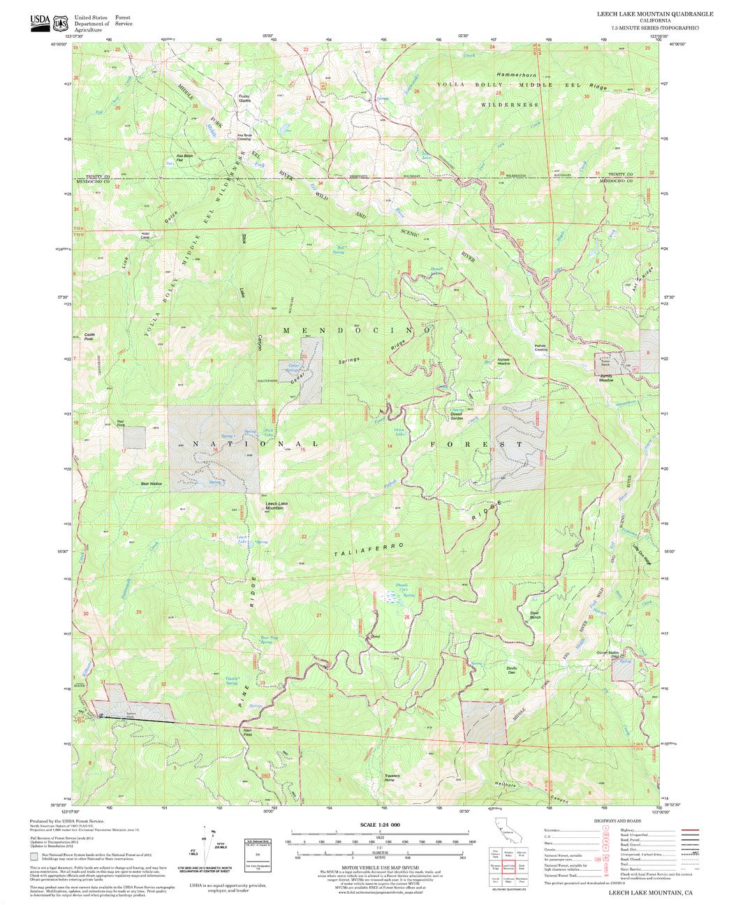 United States Department of Agriculture Forestry Service topographical map of Leech Lake Mountain, Mendocino National Forest, California.