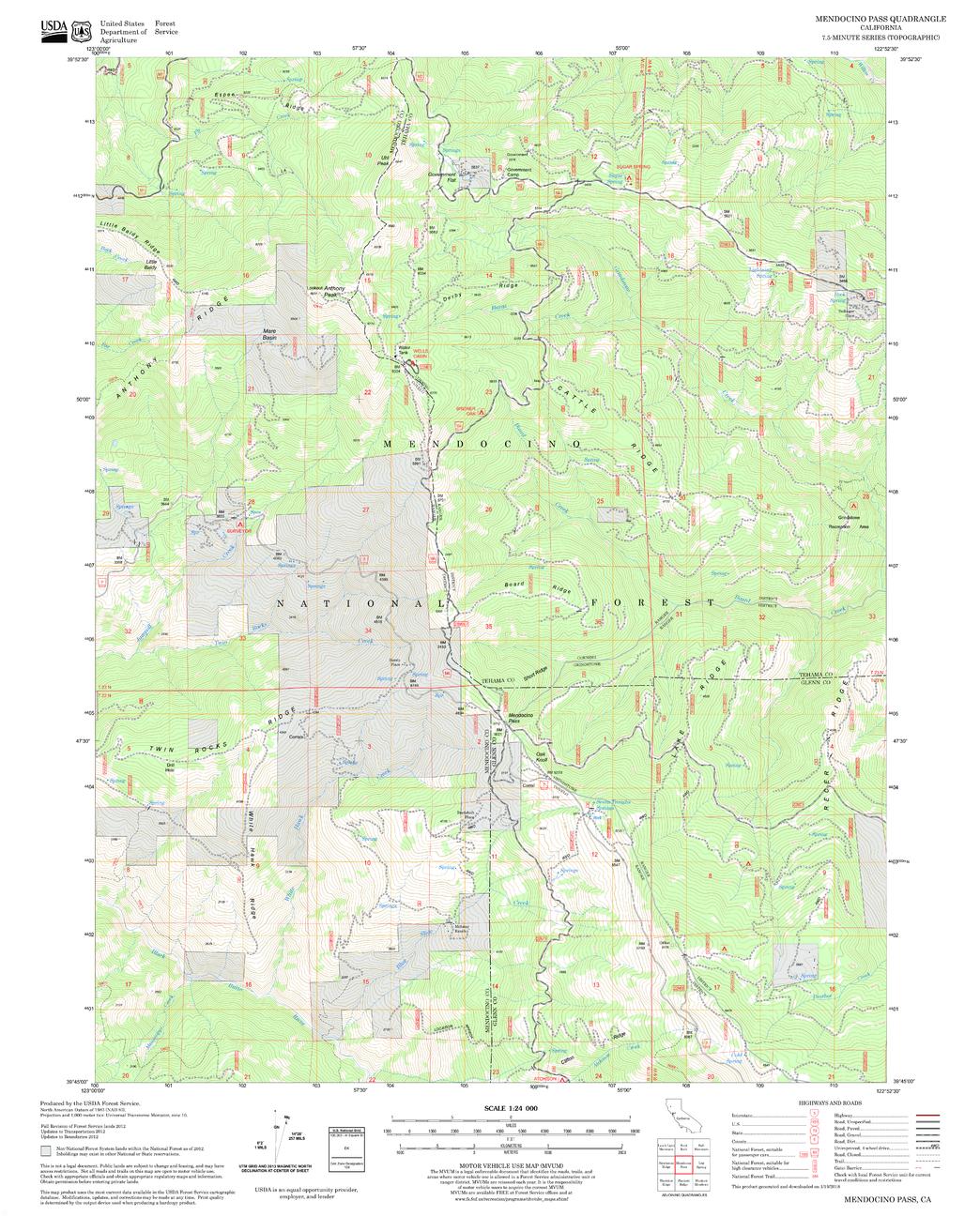 United States Department of Agriculture Forestry Service topographical map of Mendocino Pass, Mendocino National Forest, California.