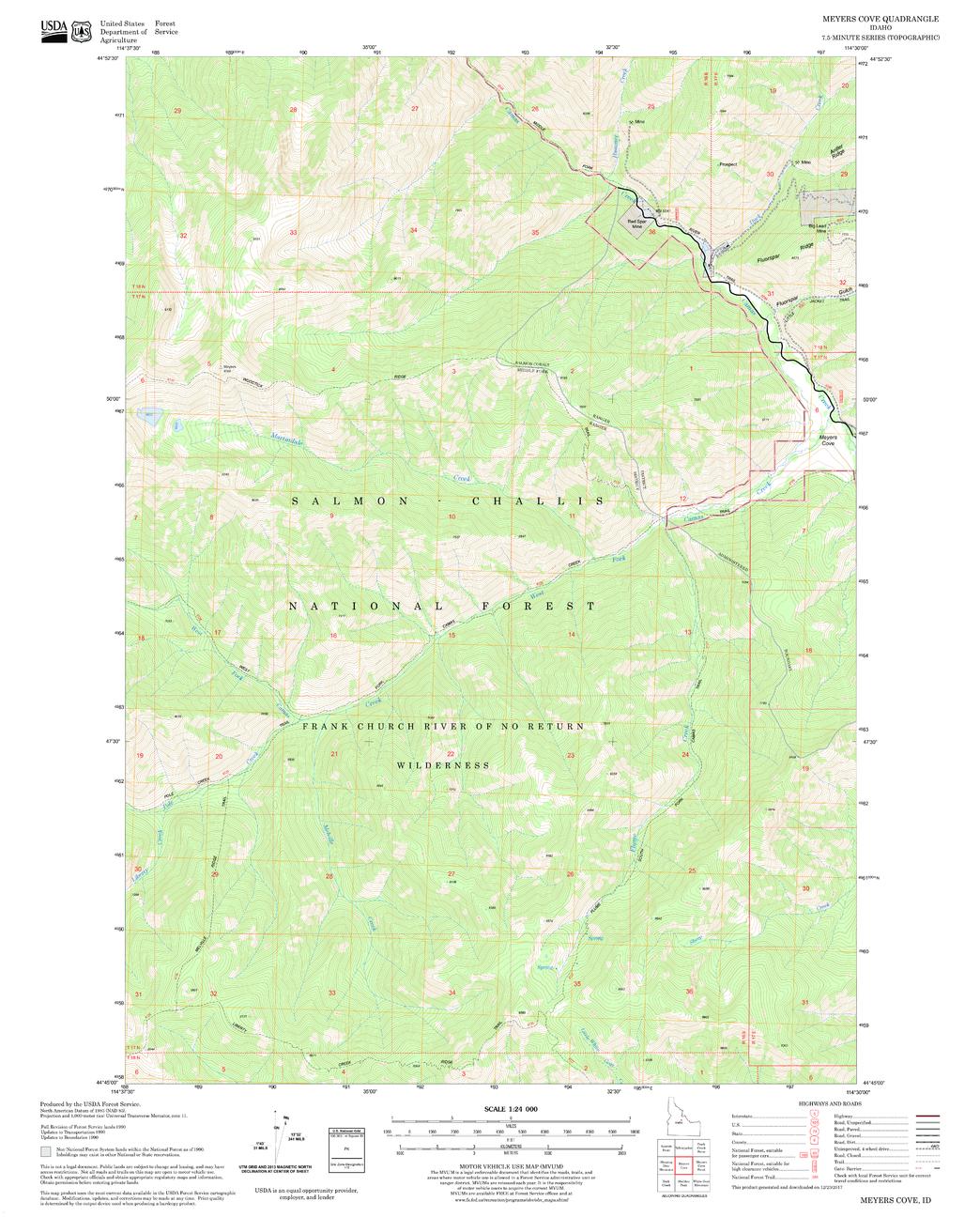 United States Department of Agriculture Forestry Service topographical map of Meyers Cove, Salmon-Chalis National Forest, Idaho.