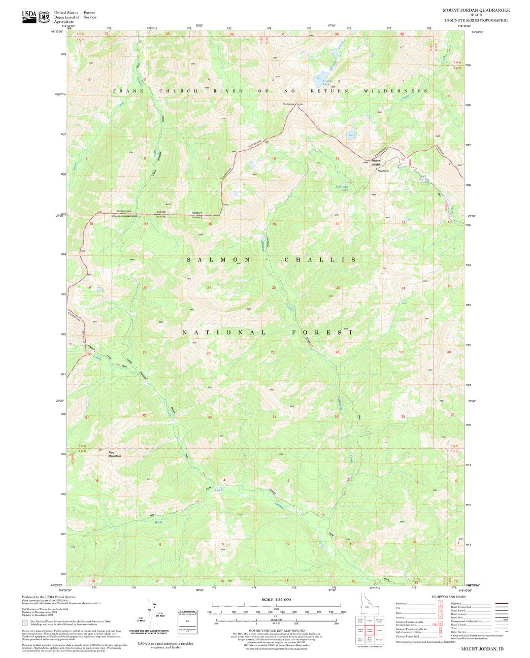 United States Department of Agriculture Forestry Service topographical map of Mount Jordan, Salmon-Chalis National Forest, Idaho.