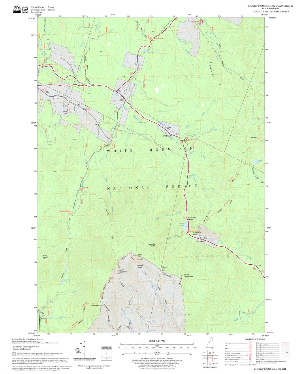 United States Forestry Service topographical map of Mount Moosilauke, New Hampshire-Vermont