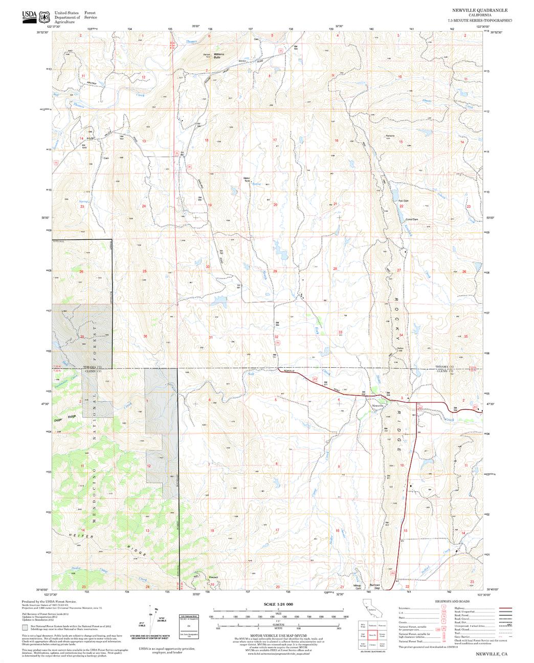 United States Department of Agriculture Forestry Service topographical map of Newville, Mendocino National Forest, California.