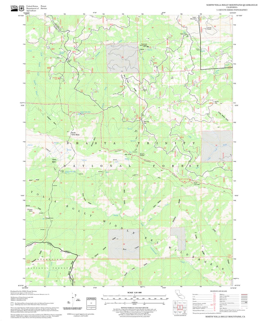 United States Department of Agriculture Forestry Service topographical map of North Yolla Bolly Mountains, Mendocino National Forest, California.
