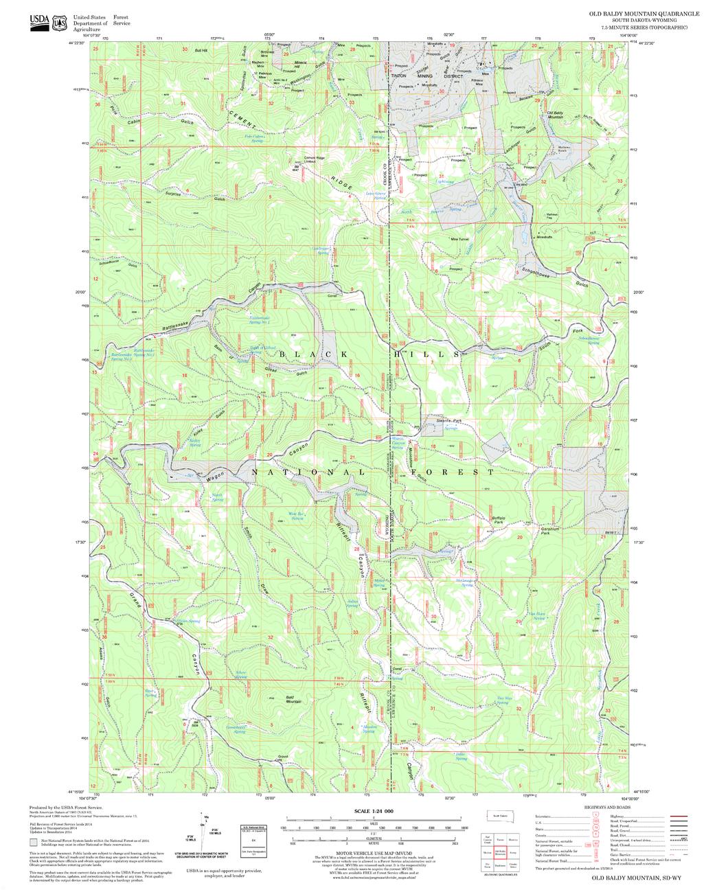 United States Department of Agriculture Forestry Service topographical map of Old Baldy Mountain, Black Hills National Forest, South Dakota.